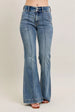 These premium Judy Blue flare jeans feature a flattering high-waist design perfect for plus size figures. Made from high-quality stretch denim in a versatile medium wash, these jeans showcase unique front seam detailing that creates an elongating effect. The flared silhouette provides a balanced look while the double button closure ensures a secure fit. The comfortable stretch fabric moves with you while maintaining its shape throughout wear. These jeans combine vintage-inspired styling with modern comfort and fit features.