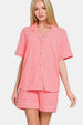 Zenana Button Down Short Sleeve Top and Shorts Lounge Set