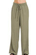 These comfortable wide-leg pants feature a relaxed fit design with an elastic waistband and adjustable drawstring for personalized comfort. Made from soft, breathable fabric in a versatile olive green shade, these pants offer a flowing silhouette perfect for casual everyday wear. The loose-fitting design provides freedom of movement while maintaining a stylish appearance. Ideal for lounging, running errands, or casual outings, these pants combine comfort with effortless style.